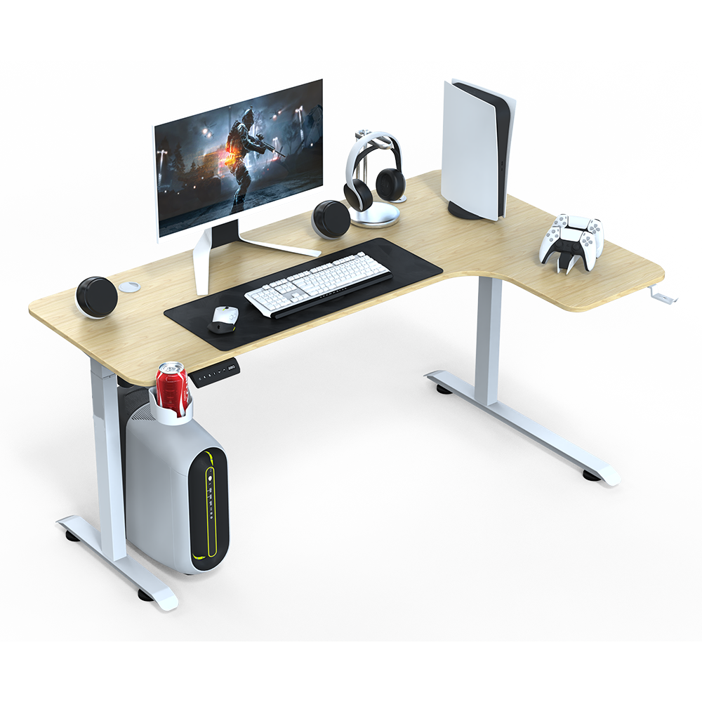 L Shaped Table with With electric Motor Height Adjustment 72cm to 117cm and cable management box – Rustic Wood Colour – Right 160cm x 100cm x 60cm